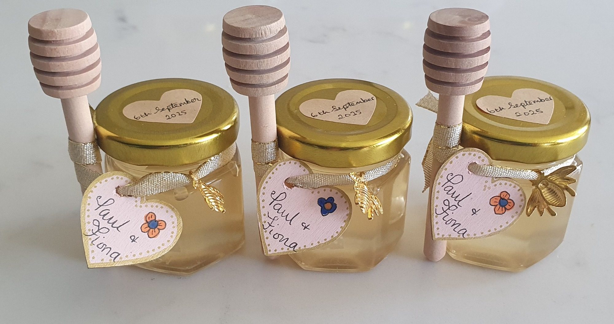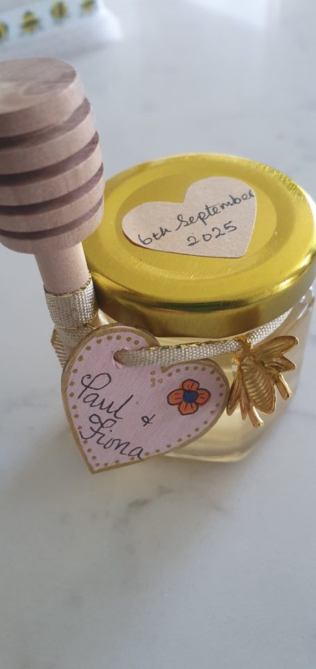 We can provide jars of honey as gifts for your wedding guests .... small 42.5g or larger 150g. We can supply just the plain jars or decorate them to your specific requirements.