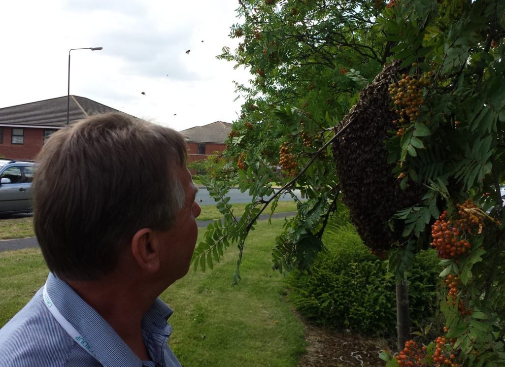 We are members of the British Beekeeping Association and registered with them as local swarm collectors. Click on the link below and enter your postcode and it will direct you to your nearest BBKA approved swarm collector who will have indemnity cover for the service.